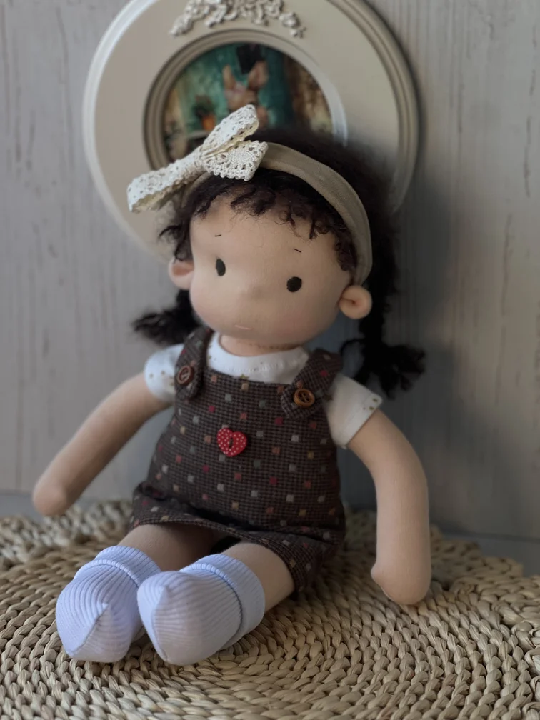 Полинка — очаровательная куколка с характером и нежным взглядом. Созданная вручную с любовью и вниманием к деталям, Полинка станет настоящей подружкой для игр, объятий и трогательных историй.