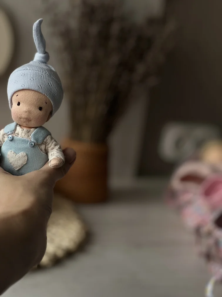 Пупсик Блондин — маленький друг для больших приключений! Очаровательный куклёнок ручной работы, созданный для заботливых детских ручек и добрых игр. Этот малыш с золотистыми волосами обязательно станет настоящим любимцем!