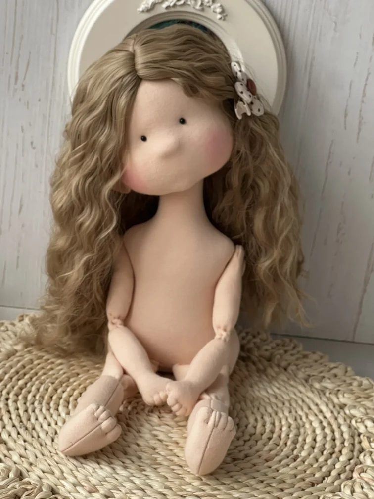 • Волосы — длинные русые, паричок из искусственных волос премиум-класса: мягкие, шелковистые, можно аккуратно причёсывать