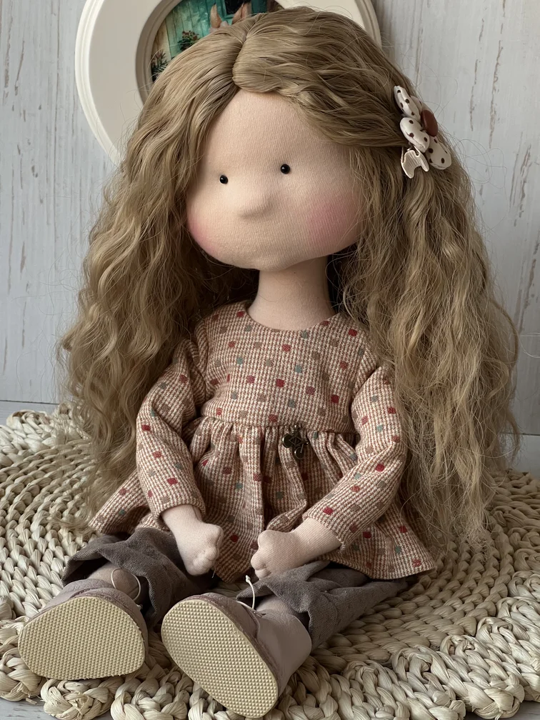 Анюта — это штрих к настроению. Для тех, кто ценит ручную работу, тепло в деталях и куклы, которые будто бы живут собственной тихой жизнью.