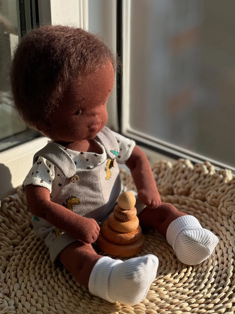 Знакомьтесь — Уголёк! Очаровательная текстильная игровая кукла ручной работы, которая обязательно станет лучшим другом для вашего малыша. Уголёк — не просто игрушка, а уютное сопровождение детства, с которым так приятно играть, обнимать и фантазировать.
