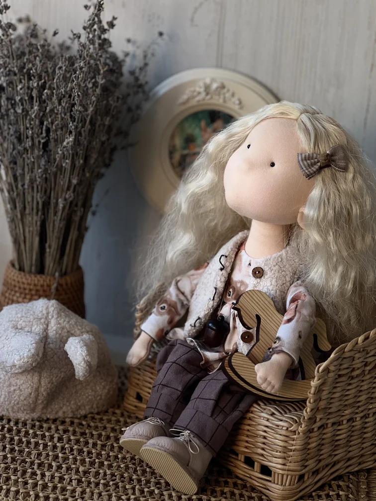 Зоя — стильная интерьерная куколка с характером и шармом. Очаровательная блондинка ручной работы, созданная из натуральных материалов, чтобы стать настоящим украшением вашего дома. Зоя — это не просто кукла, а атмосферная деталь интерьера, которая привлекает внимание с первого взгляда.