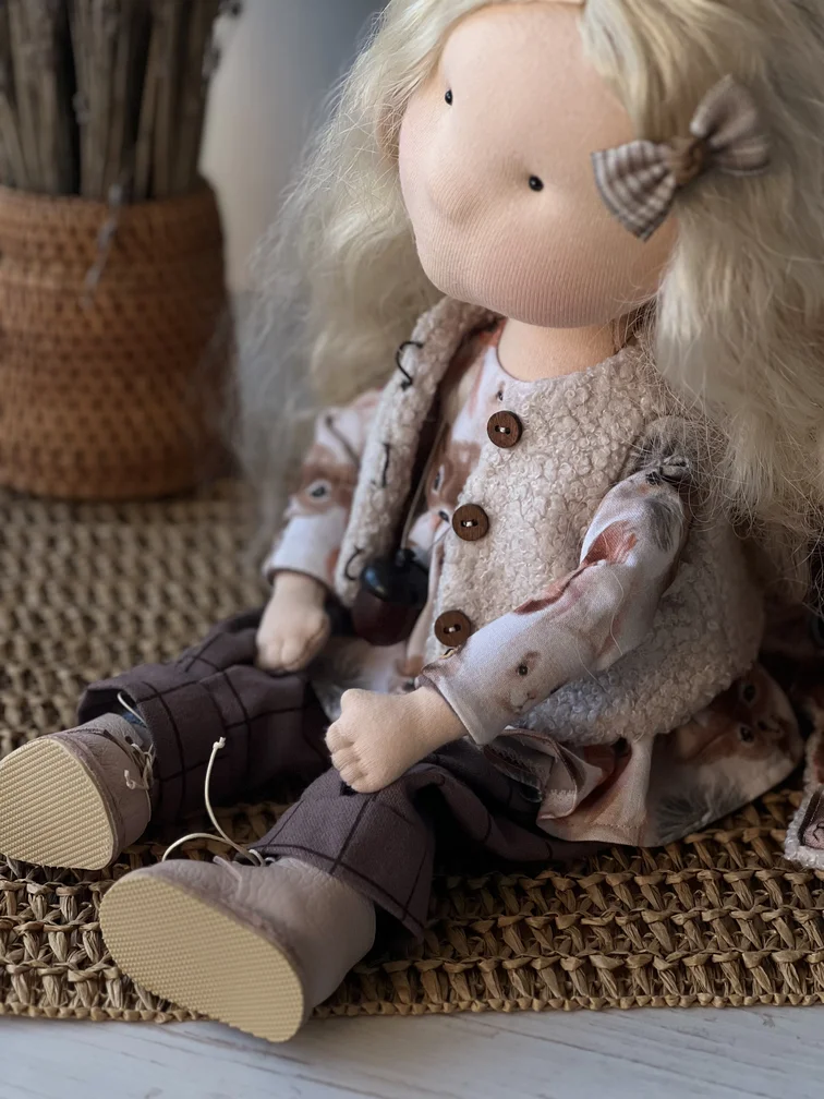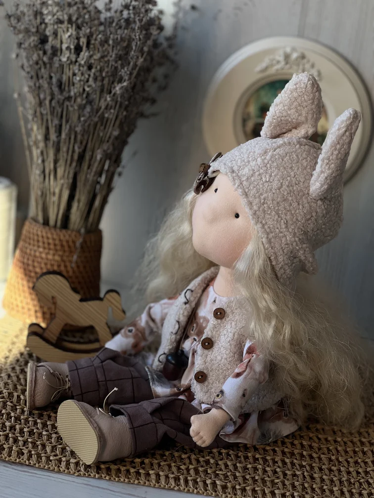 Важно: Зоя — интерьерная кукла, не предназначена для активных детских игр. Она требует бережного отношения и подойдёт для декора, коллекционирования или в подарок ценителям ручного творчества.