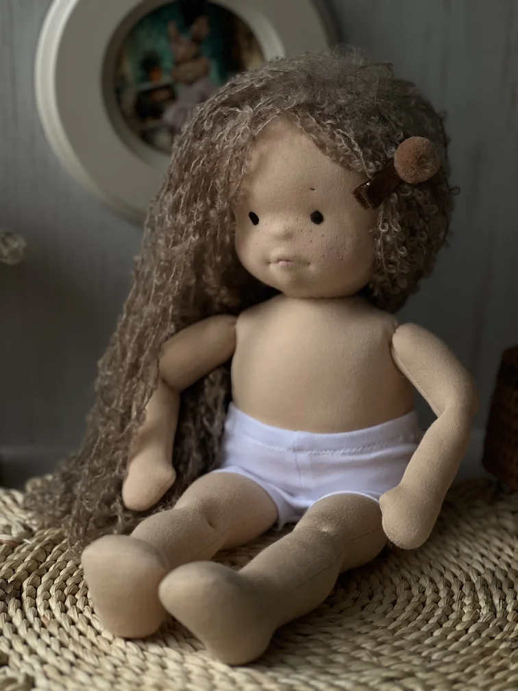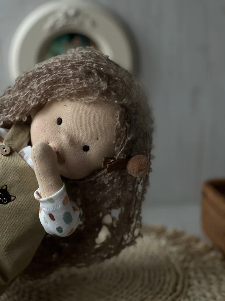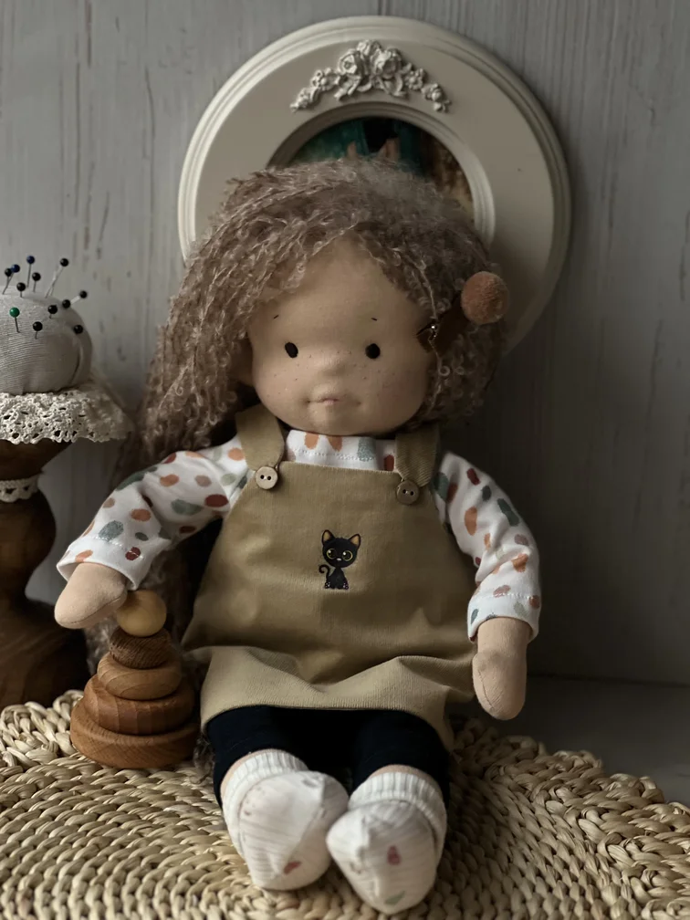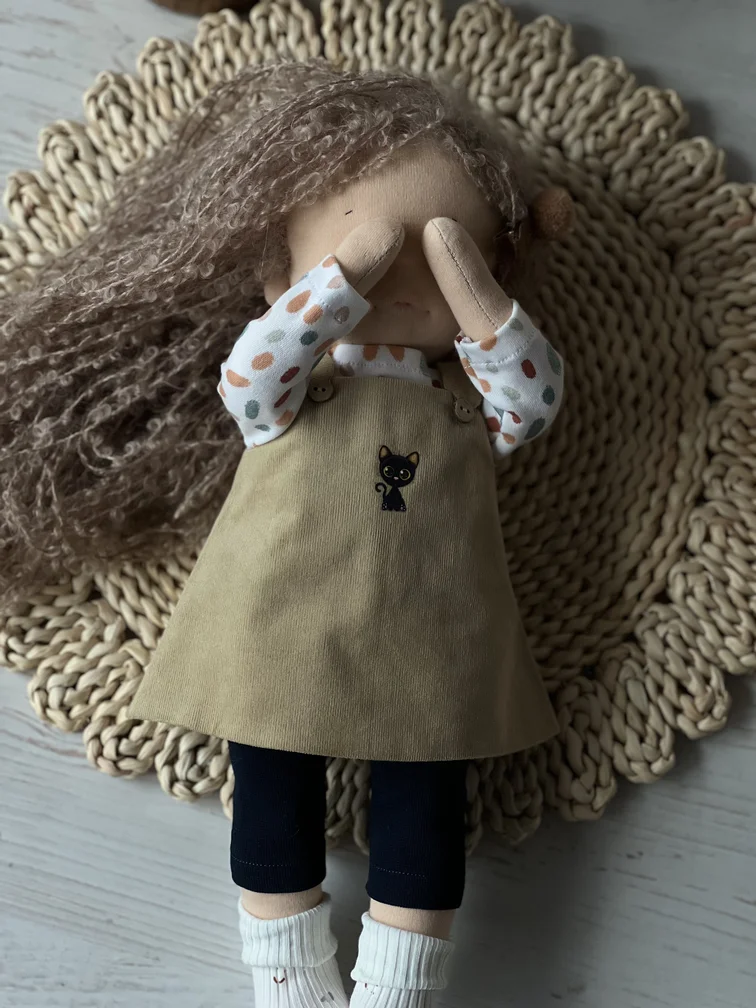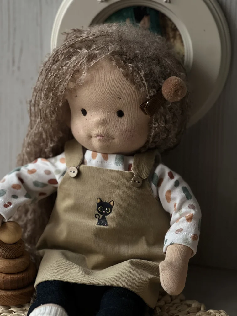 Эта очаровательная текстильная кукла ручной работы создана с любовью, чтобы